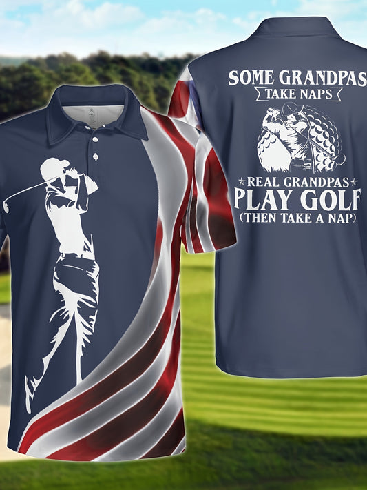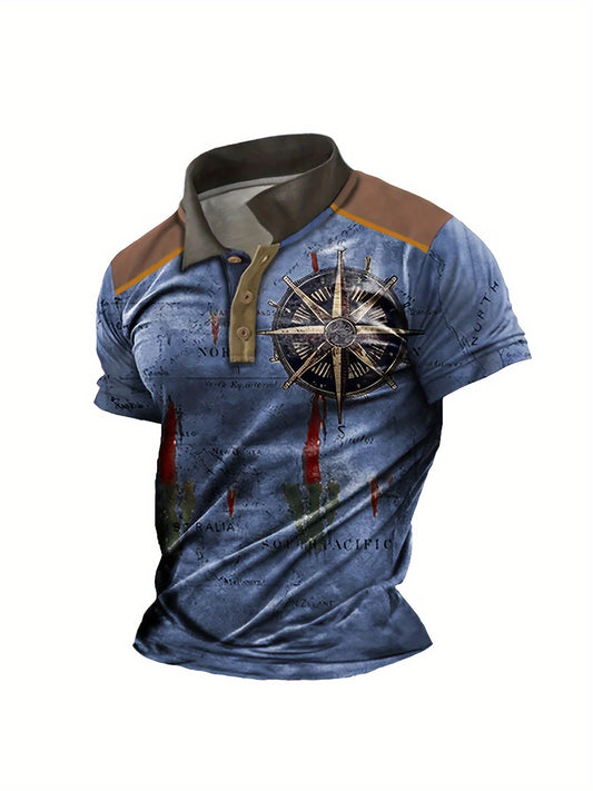 Stylish Plus Size Men's Vintage Golf Shirts with 3D Compass Print