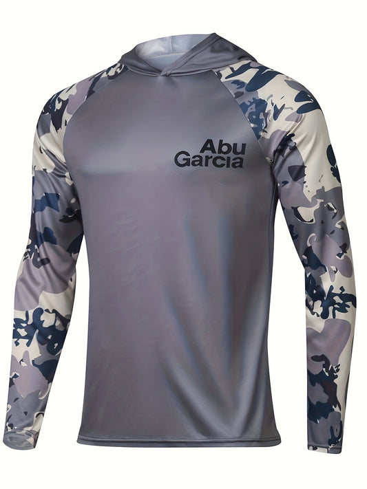 Men's Raglan Sleeve Fish Pattern Hoodie - Anti-UV Sun Protection, Breathable Quick Dry Fishing Shirt for Outdoor Activities