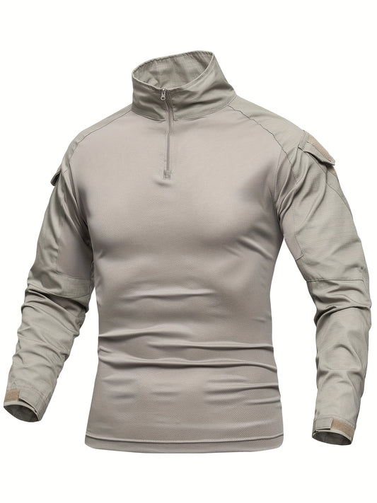 Men's Tactical Military Long Sleeve Zipper Shirt With Pockets, Fall Winter Outwear With Stand Collar