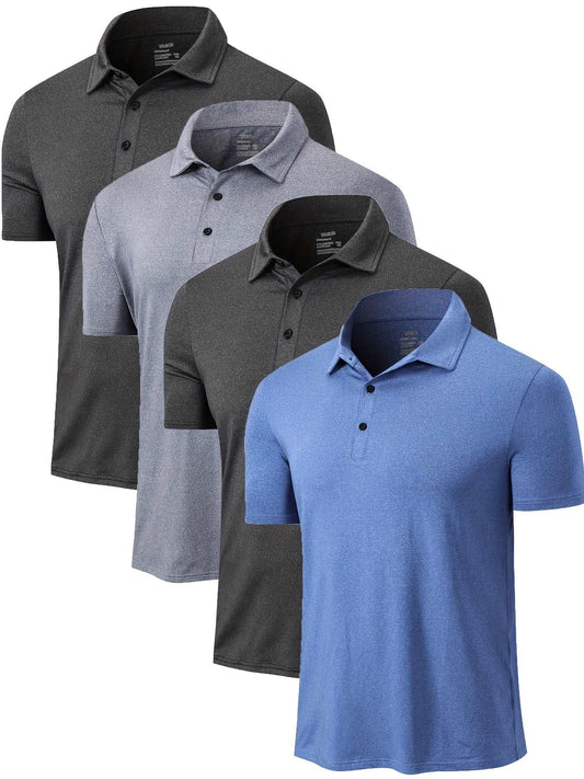 4pcs Men's Lapel T Shirt Quick Dry Short Sleeve Golf Shirt