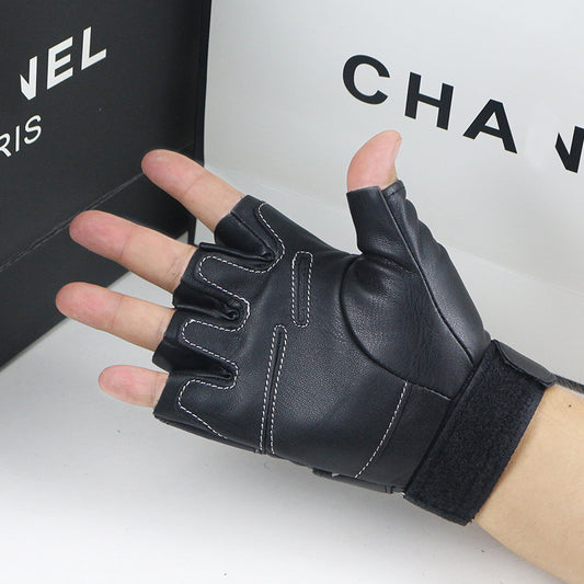 Men's spring and summer new cycling sports fitness sheepskin leather half finger gloves