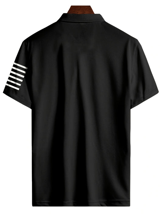 Men's Vintage Short Sleeve Lapel Golf Shirt with American Flag